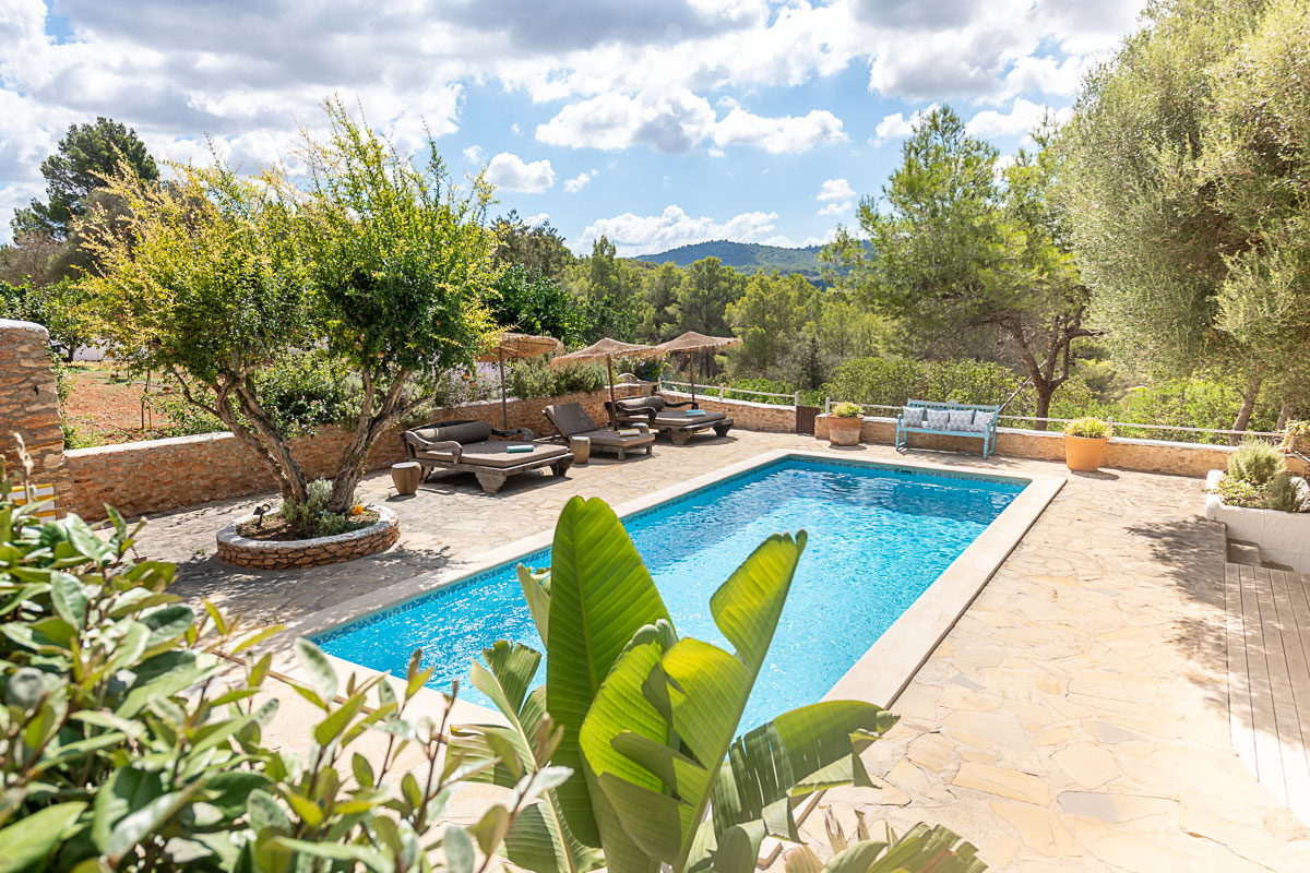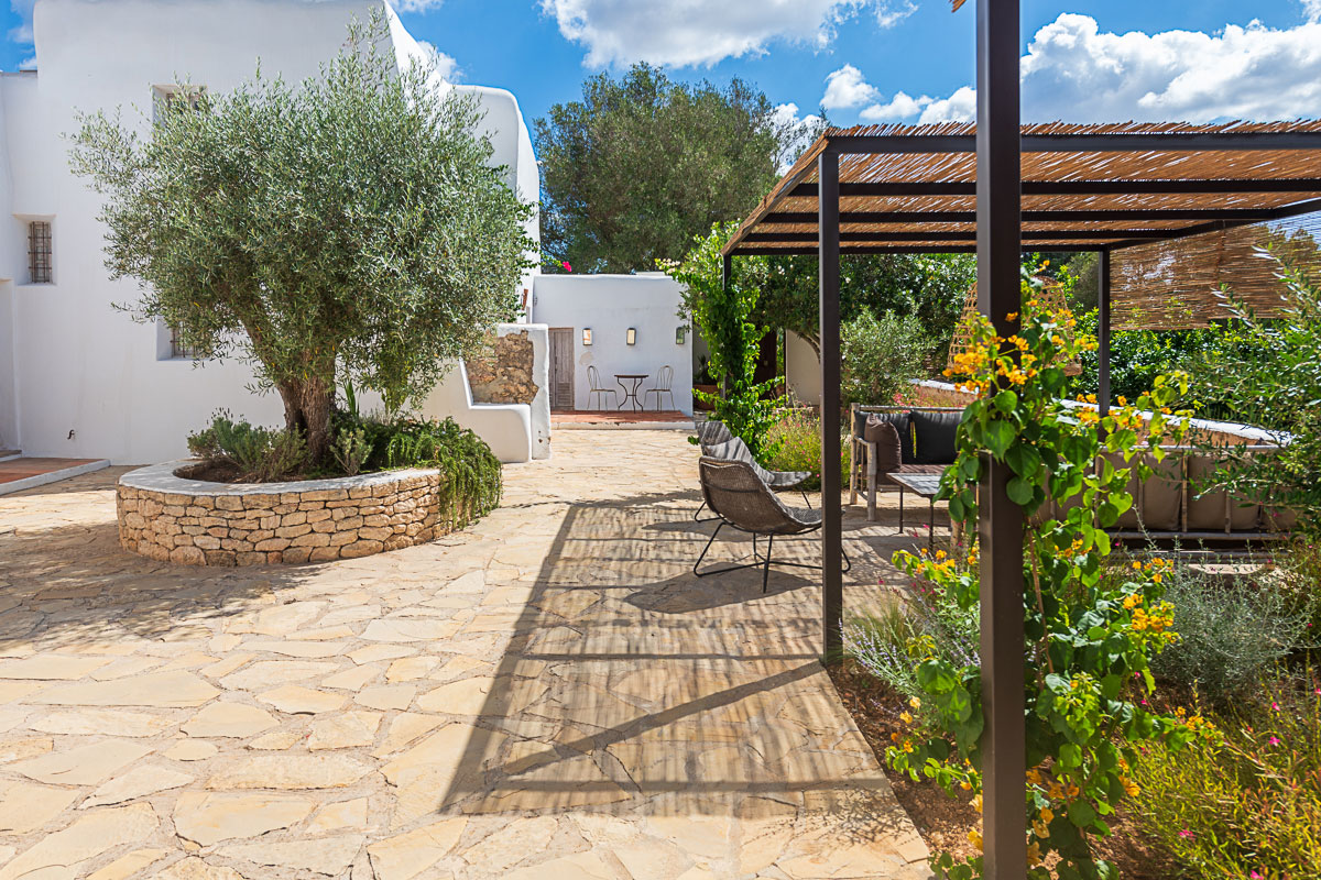 Finca Can Truy is a lovingly restored 18th-century estate that once served as an olive oil mill. Nestled in the hills between Can Tomás and San Rafael in the west of Ibiza, this peaceful hideaway offers sweeping views of the surrounding countryside. The property includes its own orchard, where pomegranates, clementines, lemons, and figs grow in abundance — a true taste of nature, just steps away.